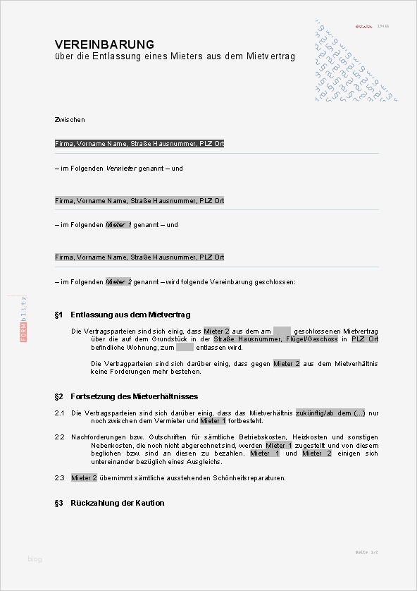 § 126 absatz 1 bgb vor, zum anderen findet sich in der regel eine diesbezügliche vereinbarung im mietvertrag.